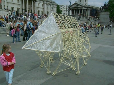 Personally I find the creativity and imagination of these types of artists truly amazing. I have a local street artist who loves to paint over billboards, and sometimes they are really great. It’s not graffiti at all, even if it is in that style. And I wish I could see a kinetic sculpture by Theo Jansen live, and ask him about his crazy engineering process. (You can get models in his shop.) And while light sculptures aren’t my jive, they still require a tremendous depth of imagination and engineering to make them work. All truly great forms of art, all modern bards!