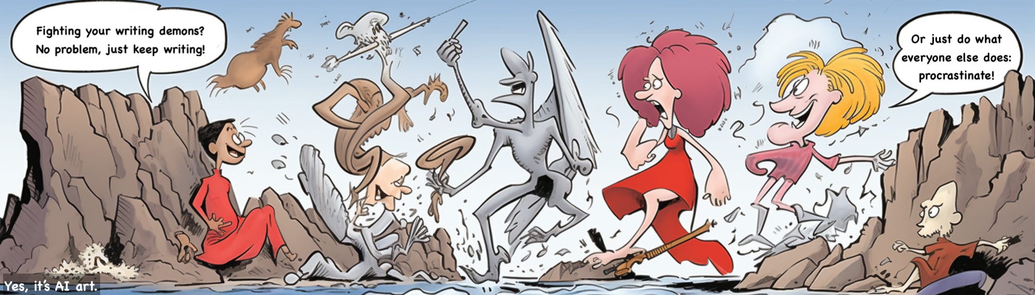I don’t really ever stop. I am just faced with choices. Right now, I can write this newsletter, or I can write the next chapter (or any chapter) in my novel, or I can work on my second non-fiction reference book (which is outlined).